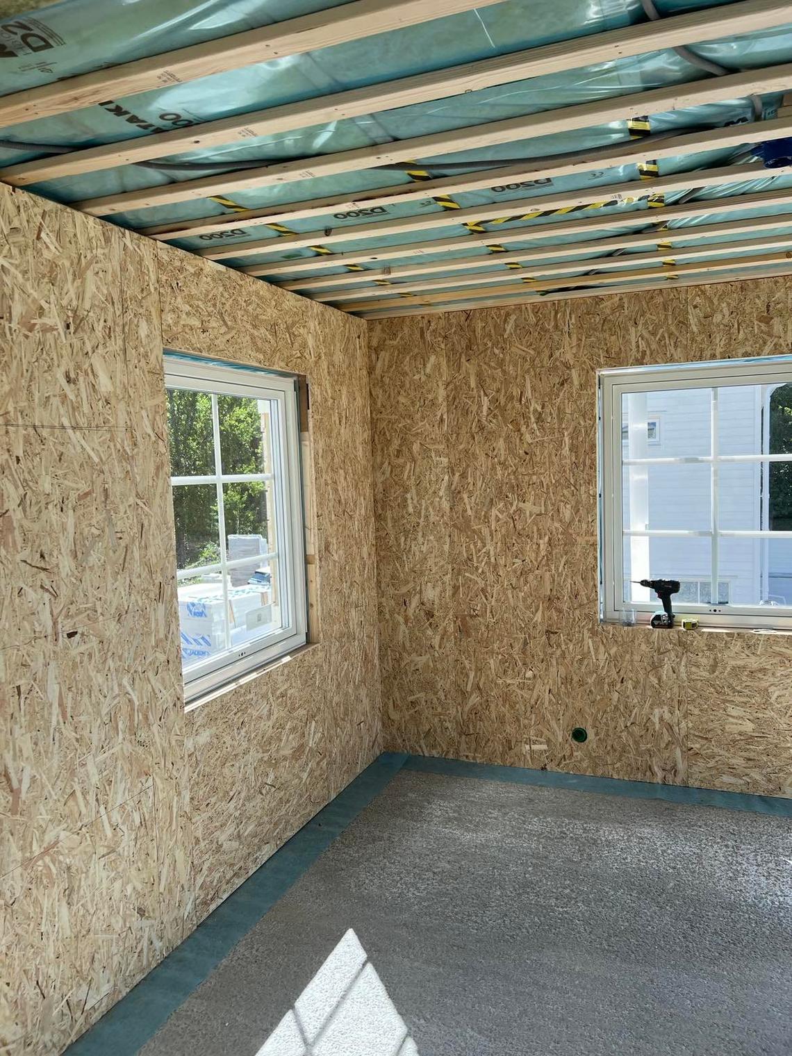 U-tak med varierande grad av ljudisolering, installation av akustiska paneler och akustisk isolering på väggar och tak.